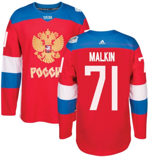 Men's Adidas Team Russia #71 Evgeni Malkin Premier Red Away 2016 World Cup of Hockey Jersey