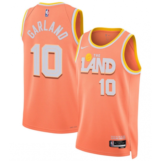 >Men's Cleveland Cavaliers #10 Darius Garland Orange 2025-26 City Edition Swingman Stitched Jersey