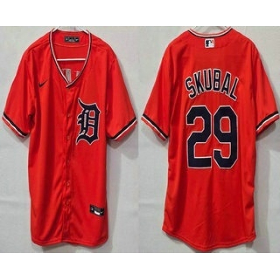 >Men's Detroit Tigers #29 Tarik Skubal Orange Cool Base Jersey