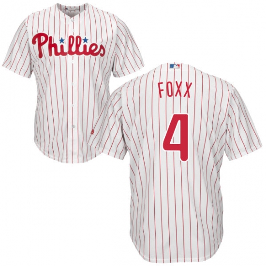 Home>MLB>Philadelphia Phillies>Jimmy Foxx>Men's Majestic Philadelphia Phillies #4 Jimmy Foxx Replica White/Red Strip Home Cool Base MLB Jersey
