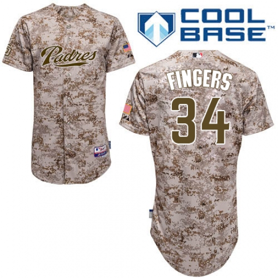 Men's Majestic San Diego Padres #34 Rollie Fingers Authentic Camo Alternate 2 Cool Base MLB Jersey