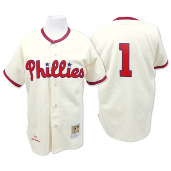 Men's Mitchell and Ness Philadelphia Phillies #1 Richie Ashburn Replica Cream Throwback MLB Jersey