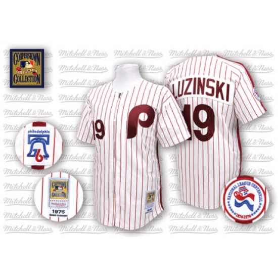Men's Mitchell and Ness Philadelphia Phillies #19 Greg Luzinski Authentic White/Red Strip Throwback MLB Jersey