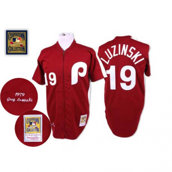 Men's Mitchell and Ness Philadelphia Phillies #19 Greg Luzinski Replica Red Throwback MLB Jersey