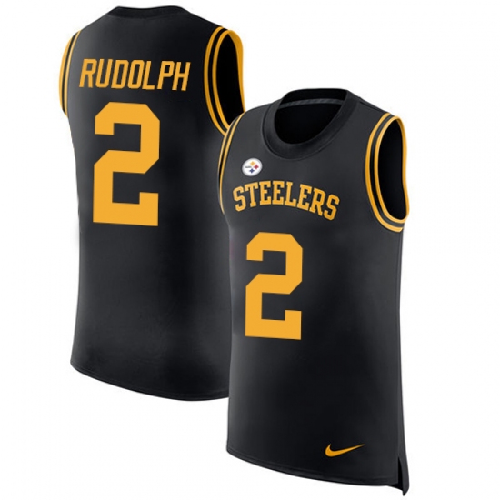 >Men's Nike Pittsburgh Steelers #2 Mason Rudolph Black Rush Player Name & Number Tank Top NFL Jersey