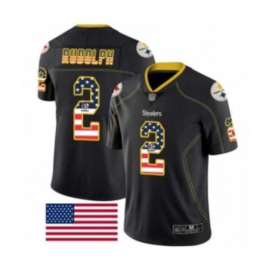 >Men's Pittsburgh Steelers #2 Mason Rudolph Limited Black Rush USA Flag Football Jersey