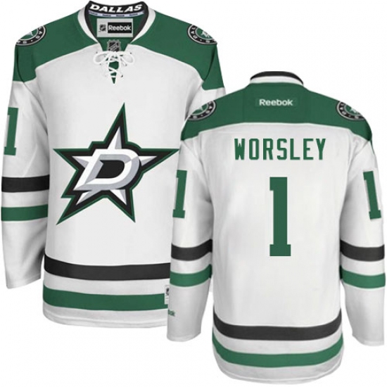 Men's Reebok Dallas Stars #1 Gump Worsley Authentic White Away NHL Jersey