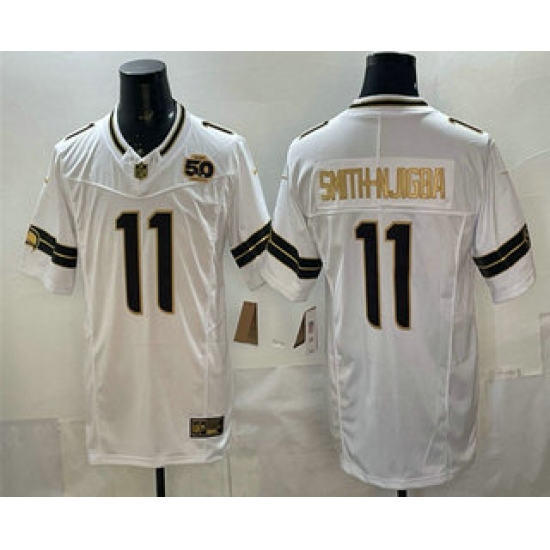 Men's Seattle Seahawks #11 Jaxon Smith-Njigba White Gold 2025 FUSE 50th Season Limited Stitched Jersey