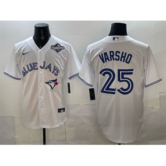 Men's Toronto Blue Jays #25 Daulton Varsho White 2025 World Series Home Cool Base Stitched Baseball Jersey