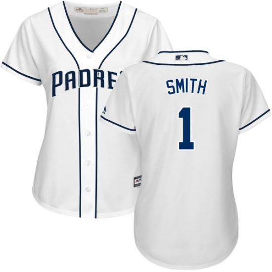 Home>MLB>San Diego Padres>Ozzie Smith>Women's Majestic San Diego Padres #1 Ozzie Smith Authentic White Home Cool Base MLB Jersey