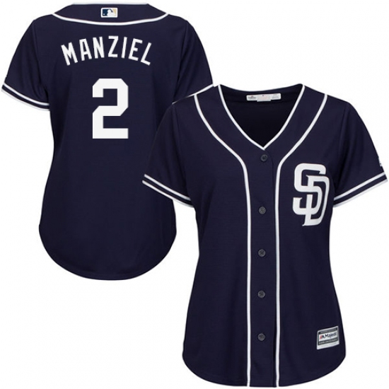 Home>MLB>San Diego Padres>Johnny Manziel>Women's Majestic San Diego Padres #2 Johnny Manziel Replica Navy Blue Alternate 1 Cool Base MLB Jersey