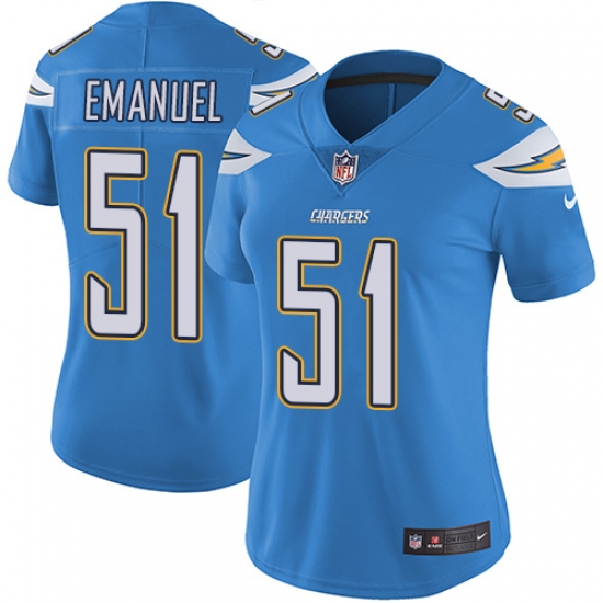 Home>NFL>Los Angeles Chargers>Kyle Emanuel>Women's Nike Los Angeles Chargers #51 Kyle Emanuel Elite Electric Blue Alternate NFL Jersey