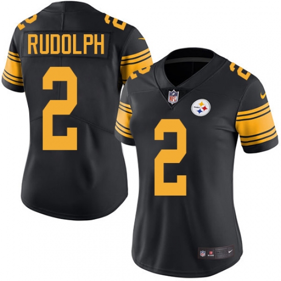 >Women's Nike Pittsburgh Steelers #2 Mason Rudolph Limited Black Rush Vapor Untouchable NFL Jersey
