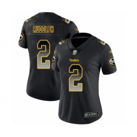 >Women's Pittsburgh Steelers #2 Mason Rudolph Limited Black Smoke Fashion Football Jersey