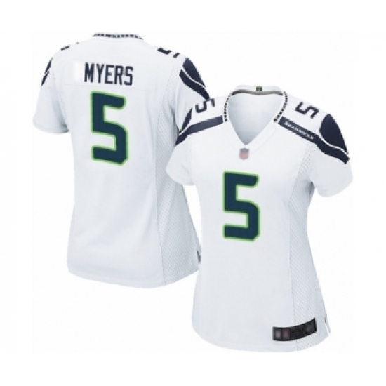 >Women's Seattle Seahawks #5 Jason Myers Game White Football Jersey