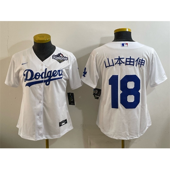>Youth Los Angeles Dodgers #18 山本由伸 White 2025 World Series Home Cool Base Stitched Baseball Jersey