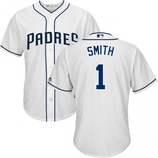 Home>MLB>San Diego Padres>Ozzie Smith>Youth Majestic San Diego Padres #1 Ozzie Smith Authentic White Home Cool Base MLB Jersey