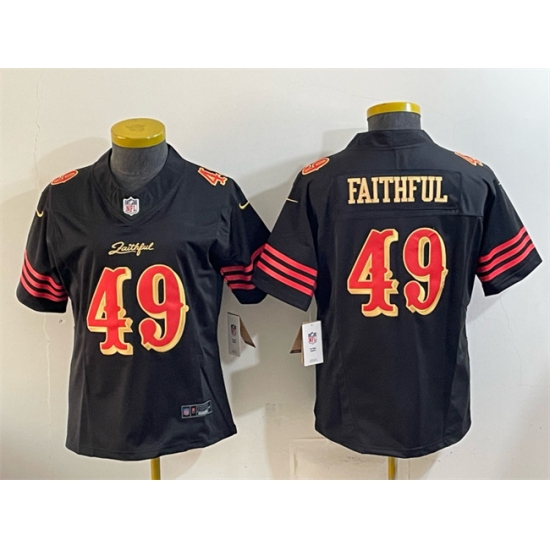 >Youth San Francisco 49ers #49 Faithful Black 2025 F.U.S.E. “Rivalries” Vapor Limited Stitched Football Jersey