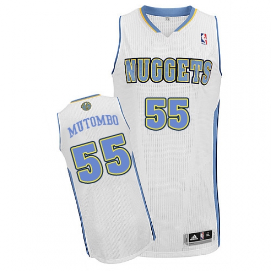 Home>NBA>Denver Nuggets>Dikembe Mutombo>Men's Adidas Denver Nuggets #55 Dikembe Mutombo Authentic White Home NBA Jersey
