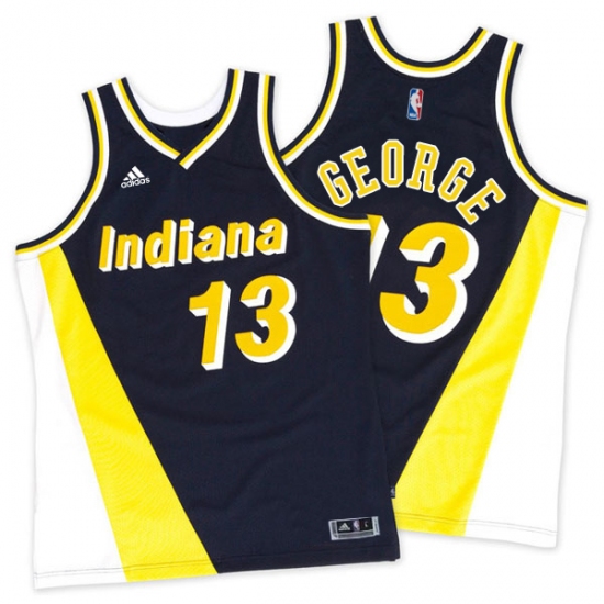 Men's Adidas Indiana Pacers #13 Paul George Authentic Navy/Gold Throwback NBA Jersey