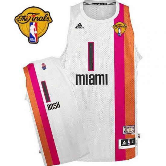Men's Adidas Miami Heat #1 Chris Bosh Swingman White ABA Hardwood Classic Finals Patch NBA Jersey