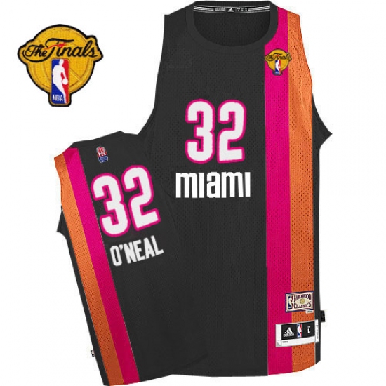Men's Adidas Miami Heat #32 Shaquille O'Neal Authentic Black ABA Hardwood Classic Finals Patch NBA Jersey