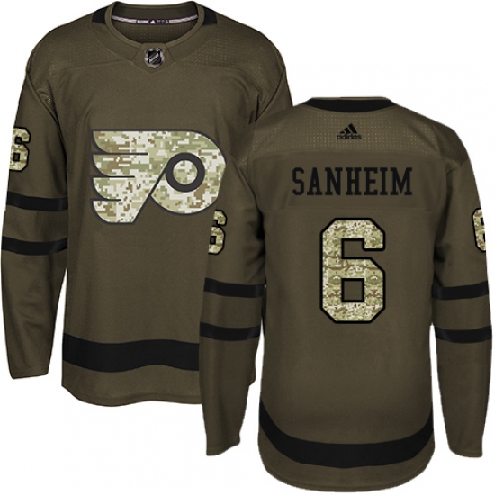 Home>NHL>Philadelphia Flyers>Travis Sanheim>Men's Adidas Philadelphia Flyers #6 Travis Sanheim Premier Green Salute to Service NHL Jersey
