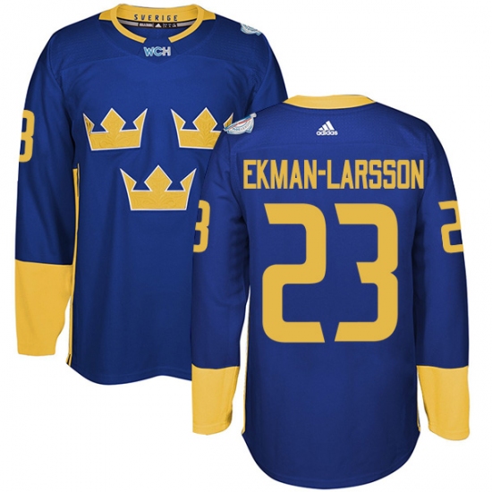 Men's Adidas Team Sweden #23 Oliver Ekman-Larsson Premier Royal Blue Away 2016 World Cup of Hockey Jersey