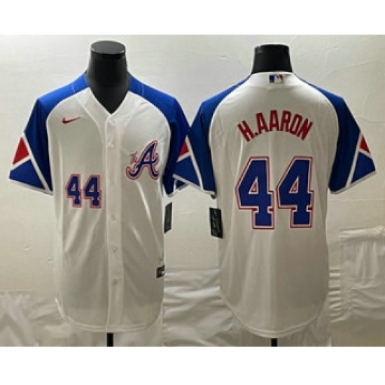 Men's Atlanta Braves #44 Hank Aaron Number White 2023 City Connect Cool Base Stitched Jerseys