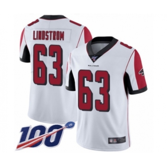 Men's Atlanta Falcons #63 Chris Lindstrom White Vapor Untouchable Limited Player 100th Season Football Jersey