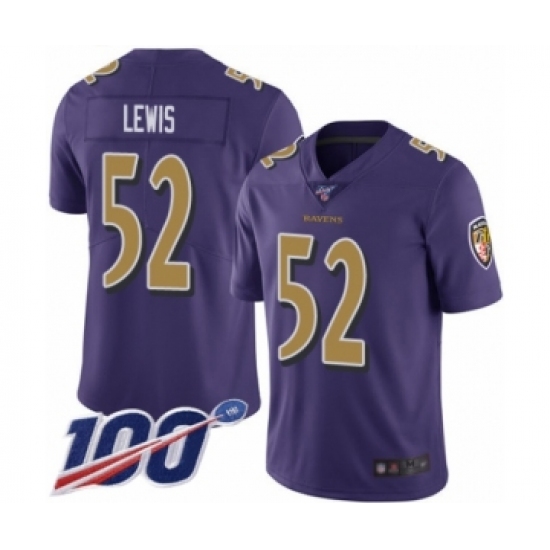 >Men's Baltimore Ravens #52 Ray Lewis Limited Purple Rush Vapor Untouchable 100th Season Football Jersey