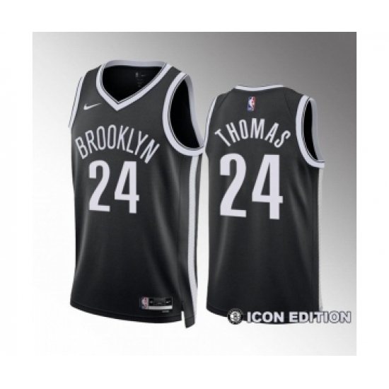 Men's Brooklyn Nets #24 Cam Thomas Black Icon Edition Stitched Basketball Jersey