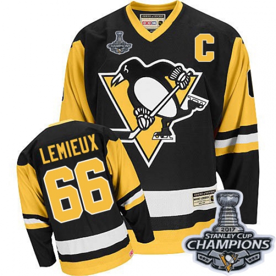 Men's CCM Pittsburgh Penguins #66 Mario Lemieux Authentic Black Throwback 2017 Stanley Cup Champions NHL Jersey