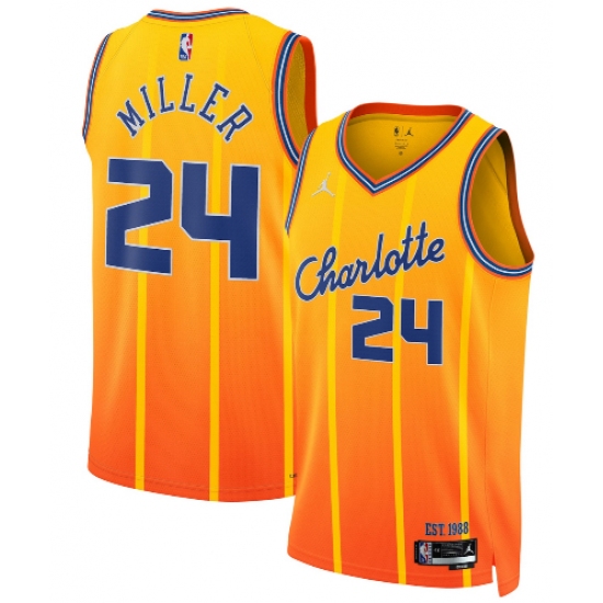 >Men's Charlotte Hornets #24 Brandon Miller Gold 2025-26 City Edition Swingman Stitched Jersey