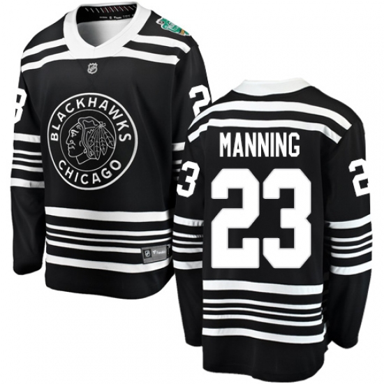 >Men's Chicago Blackhawks #23 Brandon Manning Black 2019 Winter Classic Fanatics Branded Breakaway NHL Jersey