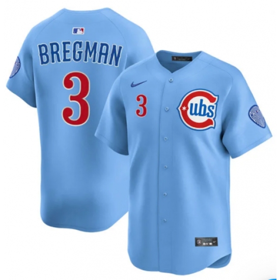 Men's Chicago Cubs #3 Alex Bregman Blue 2nd Alternate Limited Stitched Baseball Jersey
