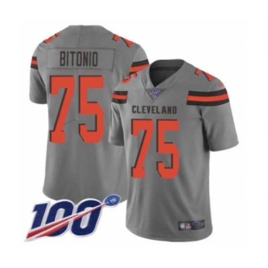 Men's Cleveland Browns #75 Joel Bitonio Limited Gray Inverted Legend 100th Season Football Jersey