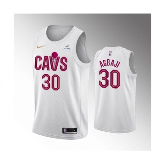 >Men's Cleveland Cavaliers #30 Ochai Agbaji White Association Edition Stitched Basketball Jersey