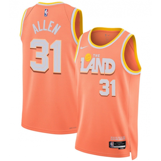 >Men's Cleveland Cavaliers #31 Jarrett Allen Orange 2025-26 City Edition Swingman Stitched Jersey