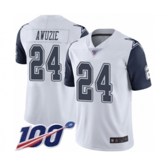 >Men's Dallas Cowboys #24 Chidobe Awuzie Limited White Rush Vapor Untouchable 100th Season Football Jersey