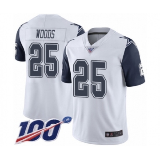 >Men's Dallas Cowboys #25 Xavier Woods Limited White Rush Vapor Untouchable 100th Season Football Jersey