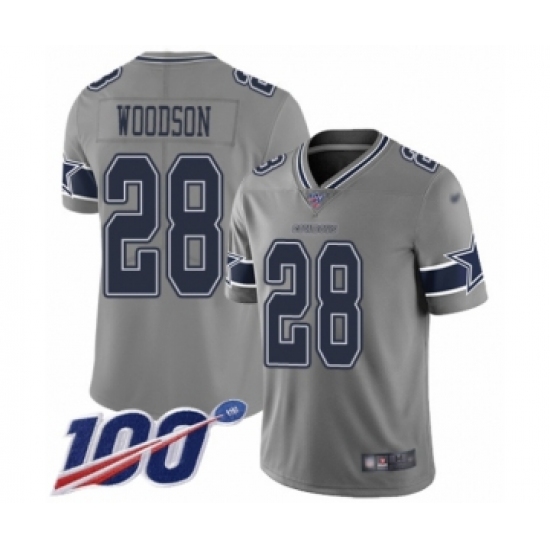 >Men's Dallas Cowboys #28 Darren Woodson Limited Gray Inverted Legend 100th Season Football Jersey