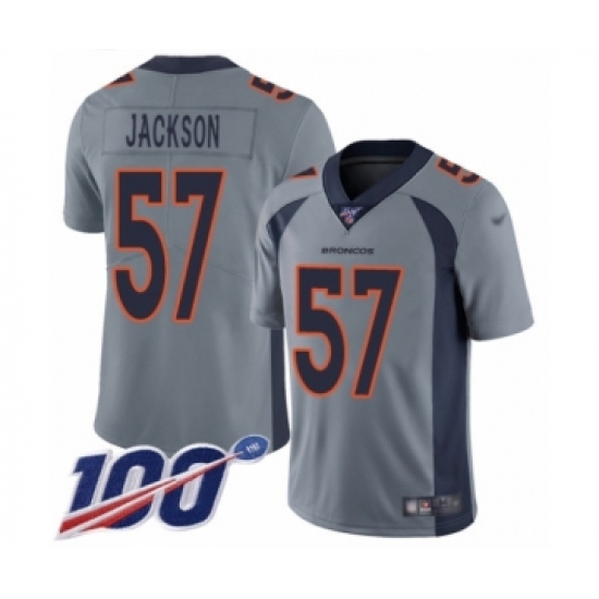 >Men's Denver Broncos #57 Tom Jackson Limited Silver Inverted Legend 100th Season Football Jersey