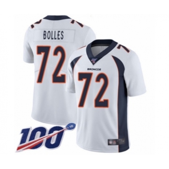 Men's Denver Broncos #72 Garett Bolles White Vapor Untouchable Limited Player 100th Season Football Jersey