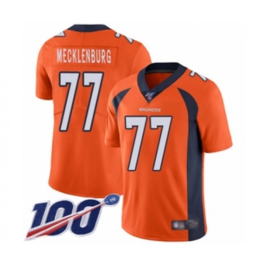 >Men's Denver Broncos #77 Karl Mecklenburg Orange Team Color Vapor Untouchable Limited Player 100th Season Football Jersey