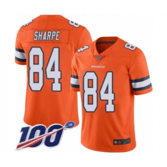 Men's Denver Broncos #84 Shannon Sharpe Limited Orange Rush Vapor Untouchable 100th Season Football Jersey