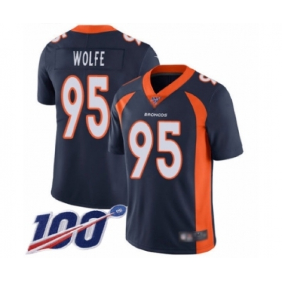 >Men's Denver Broncos #95 Derek Wolfe Navy Blue Alternate Vapor Untouchable Limited Player 100th Season Football Jersey
