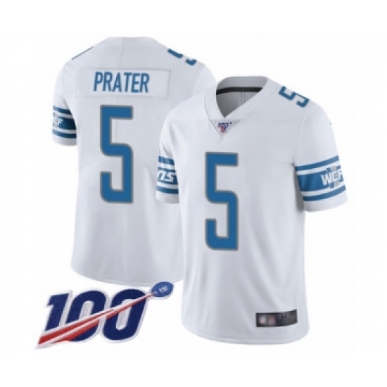Men's Detroit Lions #5 Matt Prater White Vapor Untouchable Limited Player 100th Season Football Jersey