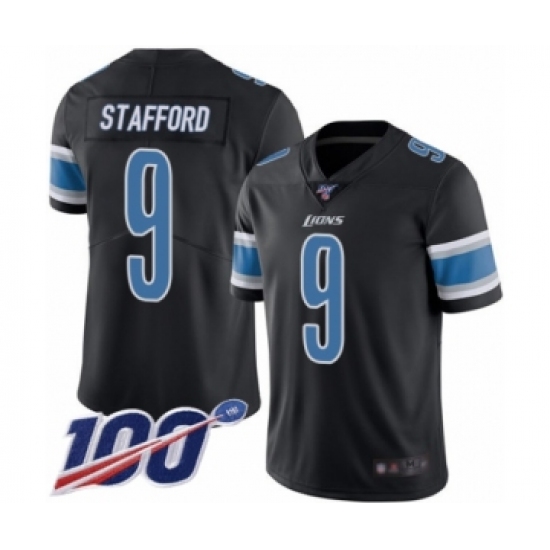 Men's Detroit Lions #9 Matthew Stafford Limited Black Rush Vapor Untouchable 100th Season Football Jersey