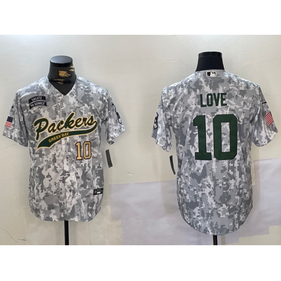 >Men's Green Bay Packers #10 Jordan Love 2024 Arctic Camo Salute To Service Stitched Baseball Jerseys